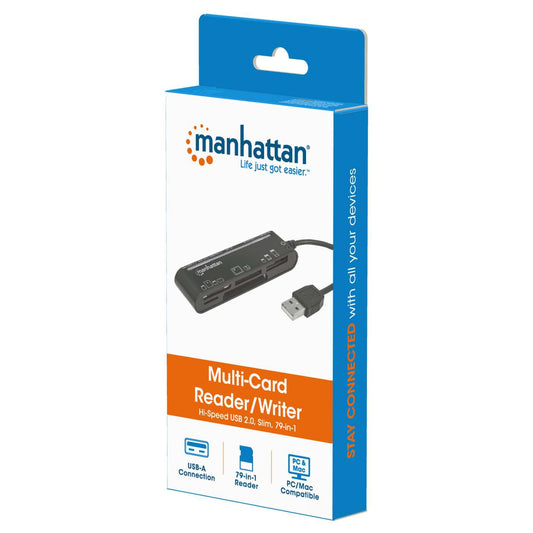 USB 2.0 Tipo-A Masculino a ranuras microSD, SD/MMC, MS, xD y CF, USB de alta velocidad, 480 Mbps, alimentación por autobus, negroNúmero de modelo: 101998 -