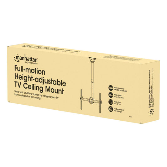 Soporta una pantalla de 37" a 70" con un peso máximo de 50 kg (110 lb); ideal para techos inclinados y planos; giro de 360°, inclinación de 0° 25°, extensión telescópica, ajuste denivel de +/- 3°; en color negroNúmero de modelo: 462204 -