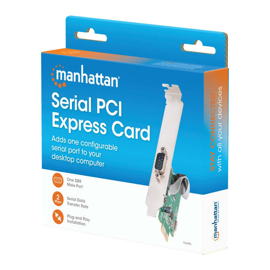Dos puertos DB9; compatible con buses de carril PCI Express x1, x4, x8 y x16Número de modelo: 152082 -